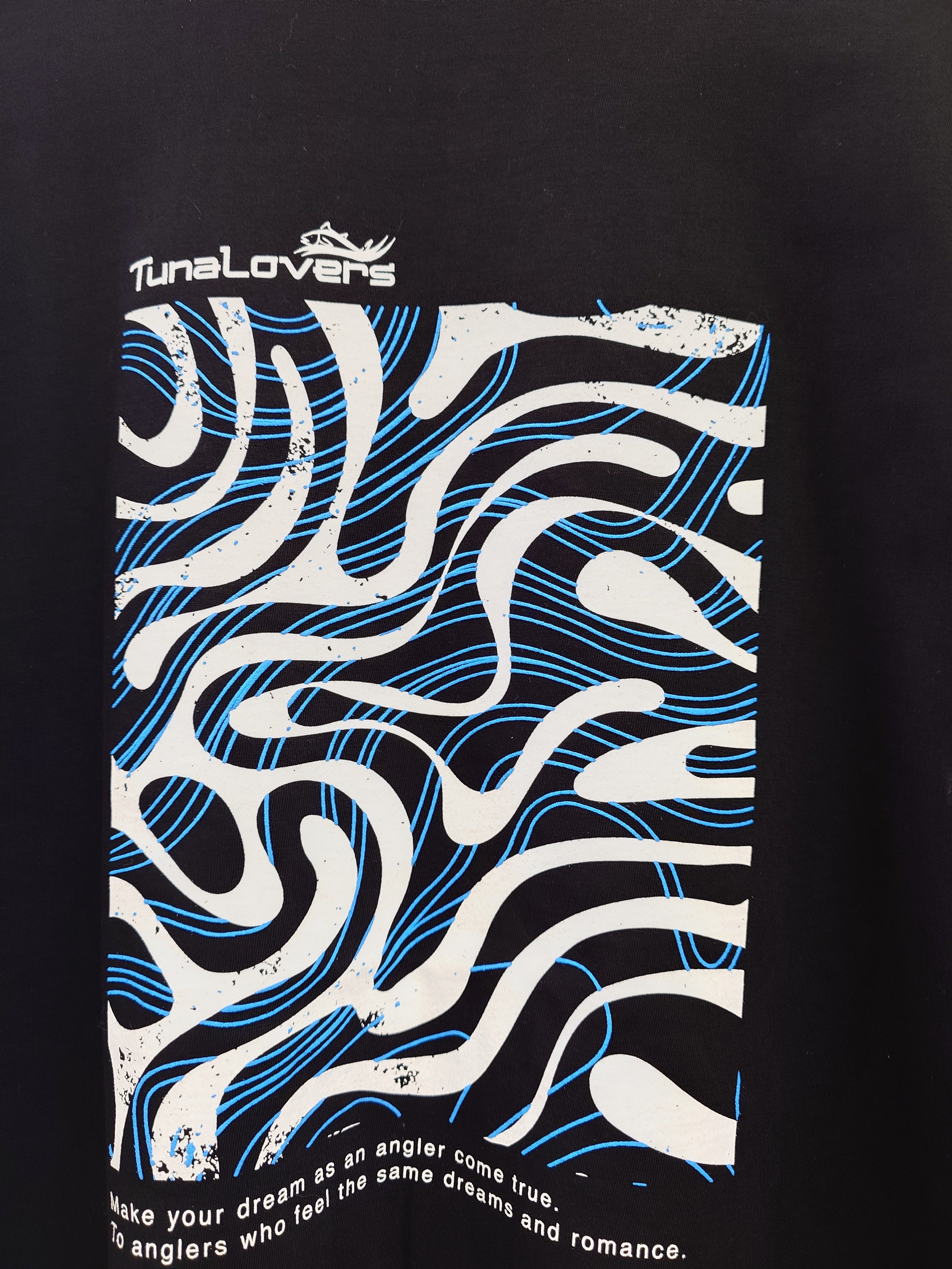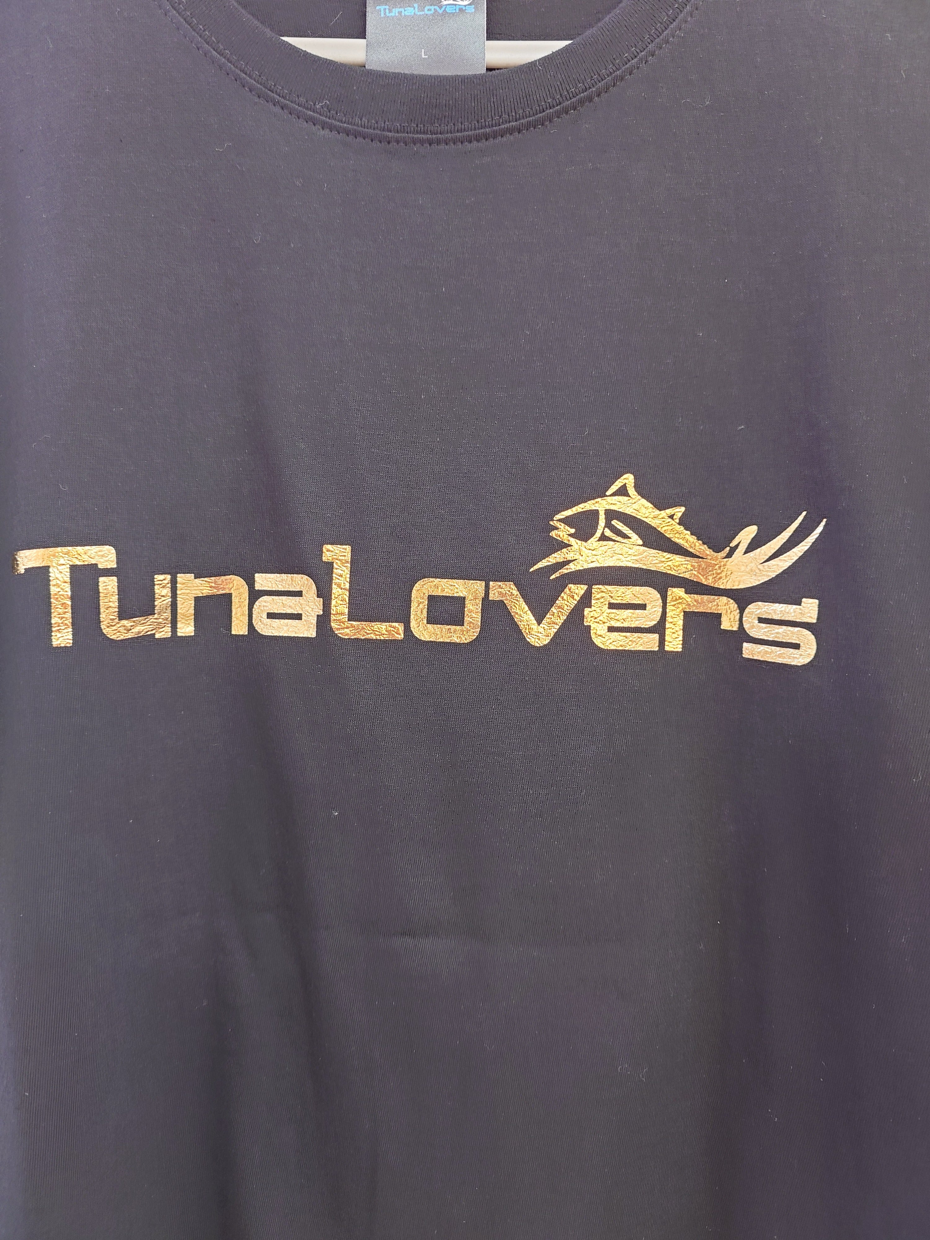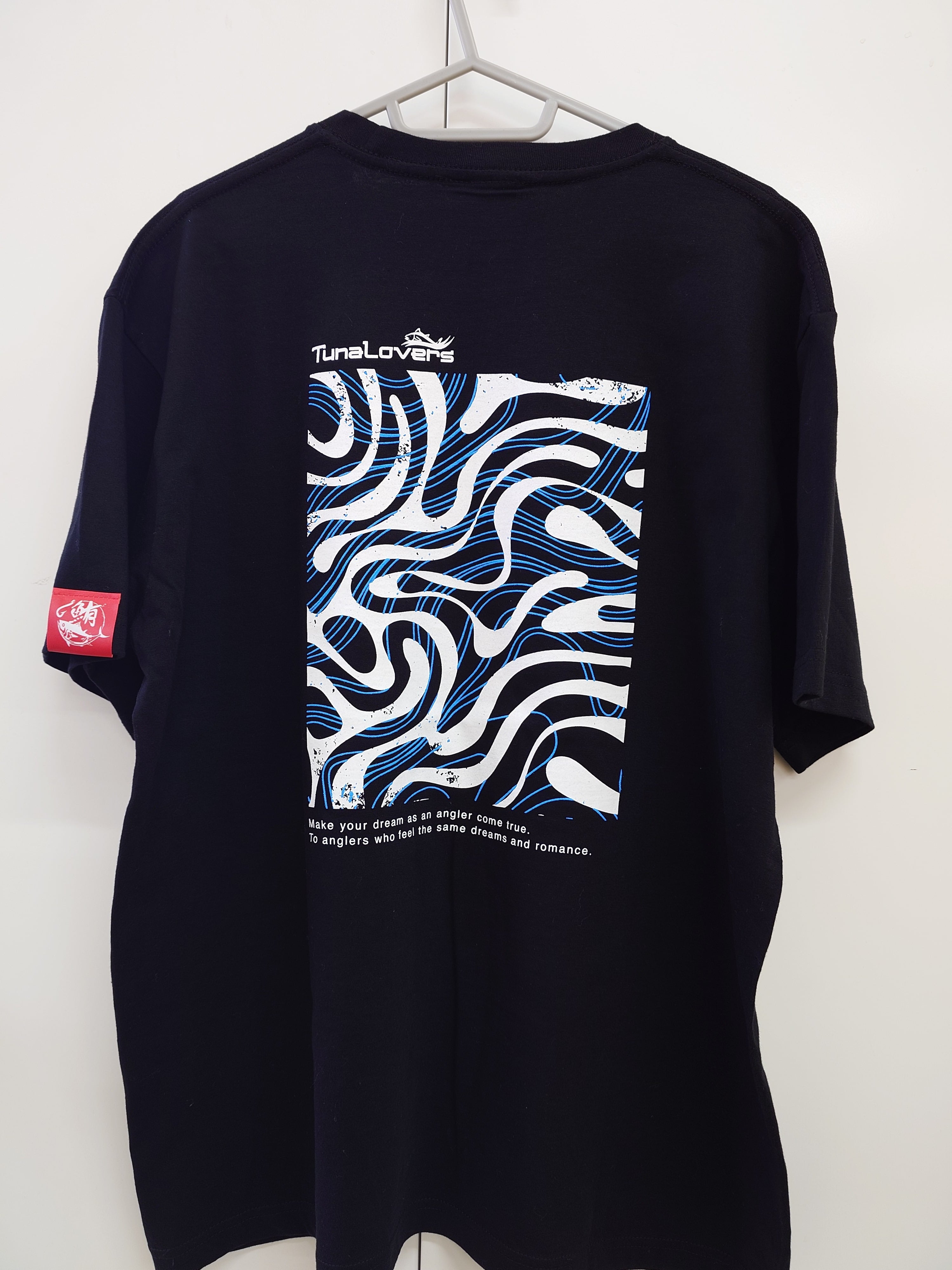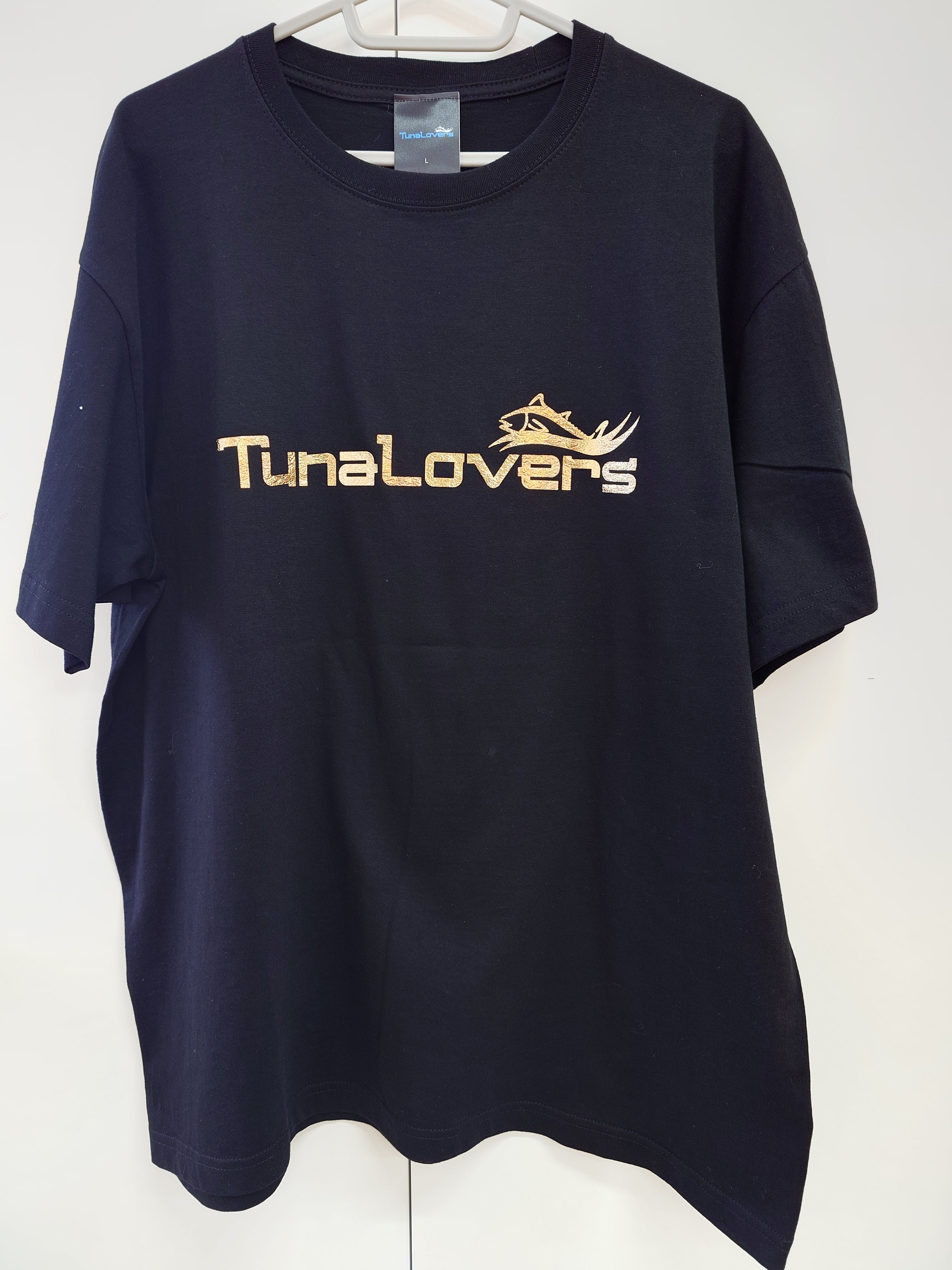 数量限定販売のオーガニックコットン迷走Tシャツ ブラック Lサイズ 前面にTunaLoversのロゴを金色で堂々と配置し、いかにも釣れそうなTシャツ!と思いきや、中々飛ばないマグロを探して魚探を頼りに迷走しているイメージをデザインにしました。環境に配慮したオーガニックコットンを使用し、肌に優しい素材感で快適な着心地を提供します。 ■商品仕様 ● サイズ:L(着丈67㎝、身丈70cm、身幅55cm、肩幅52cm、袖丈22cm) ● 材質:綿100%